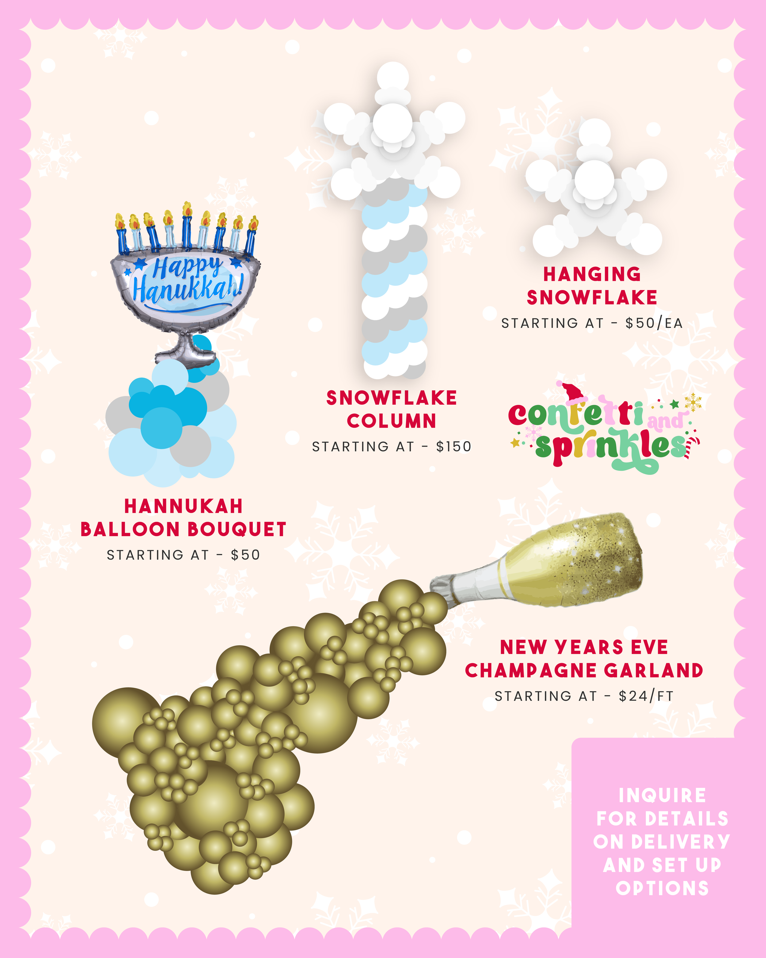 Confetti & Sprinkles is not responsible for any damages that occur after our departure. We are also not responsible for any injuries or allergic reactions caused by our latex balloons and/or backdrops.
